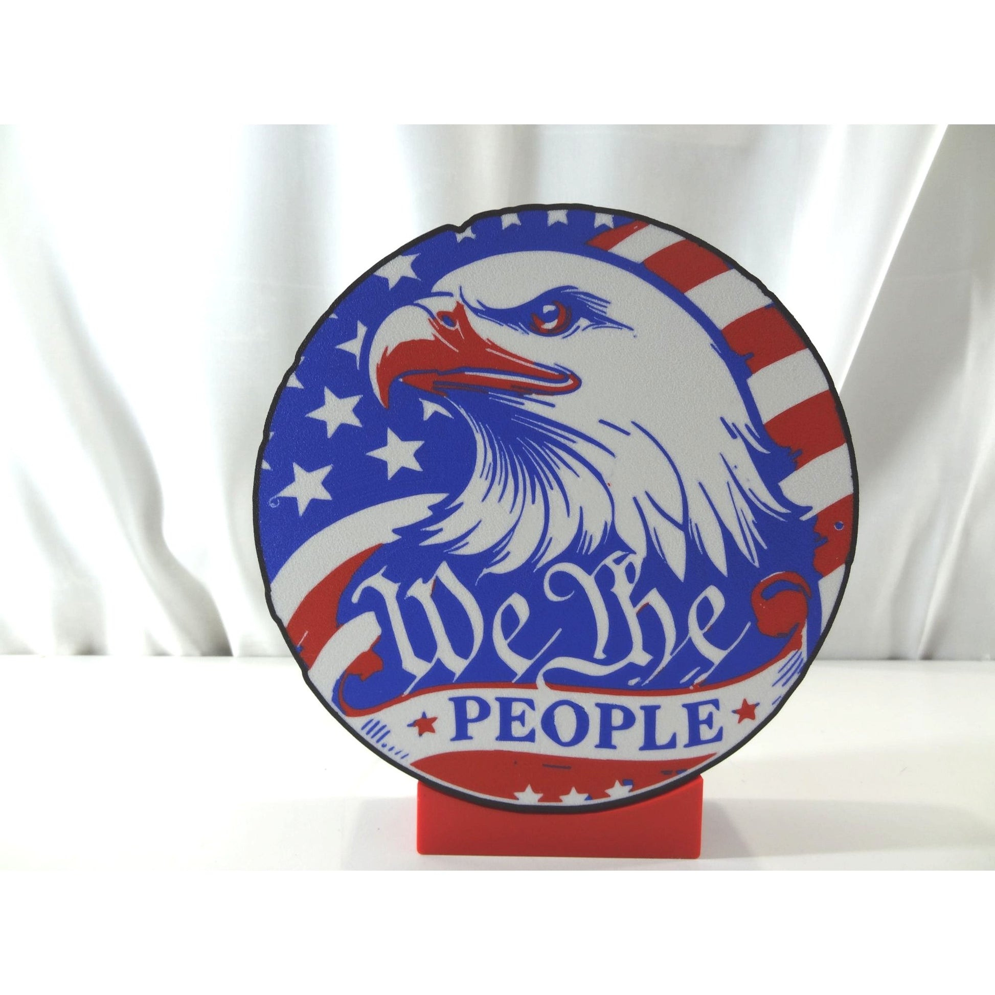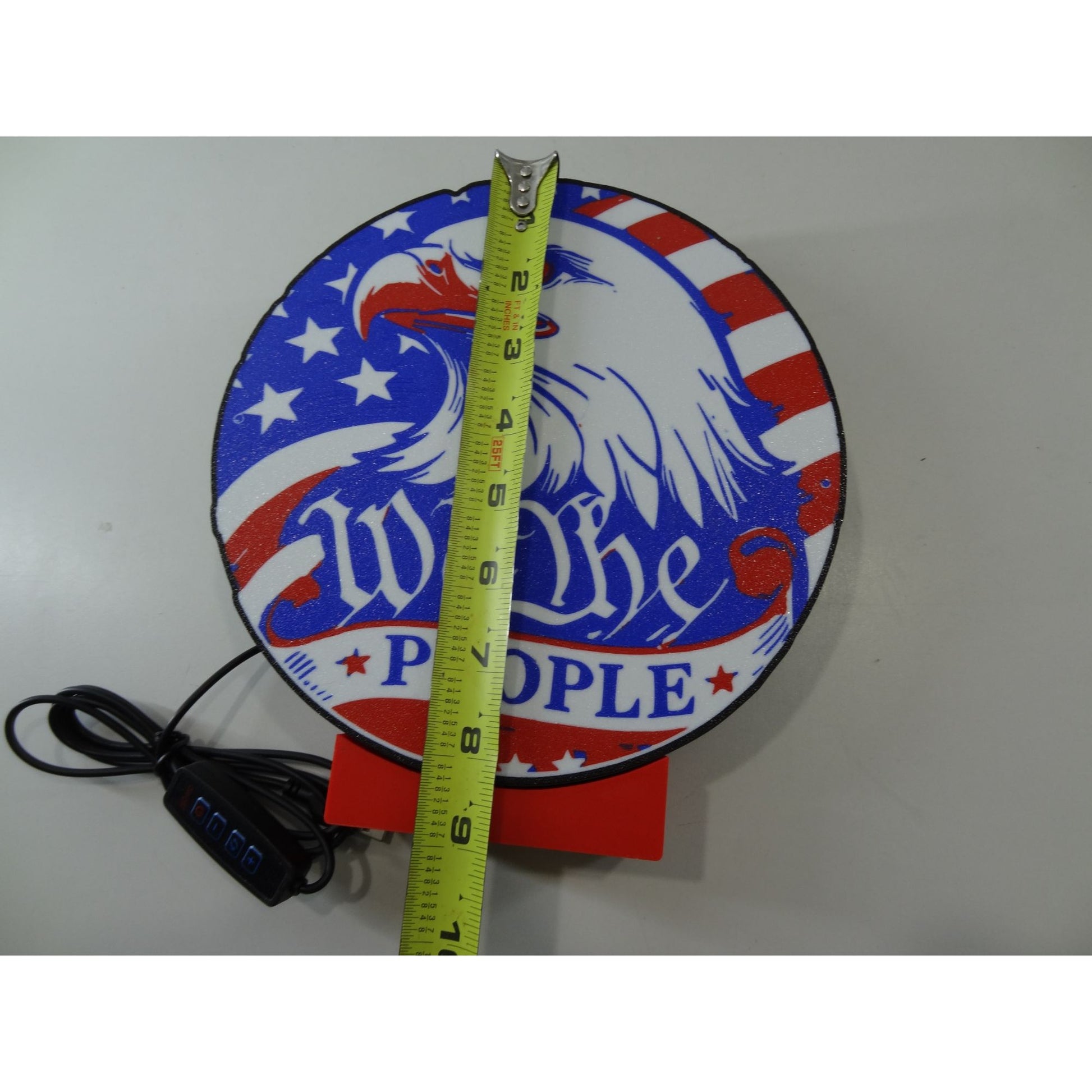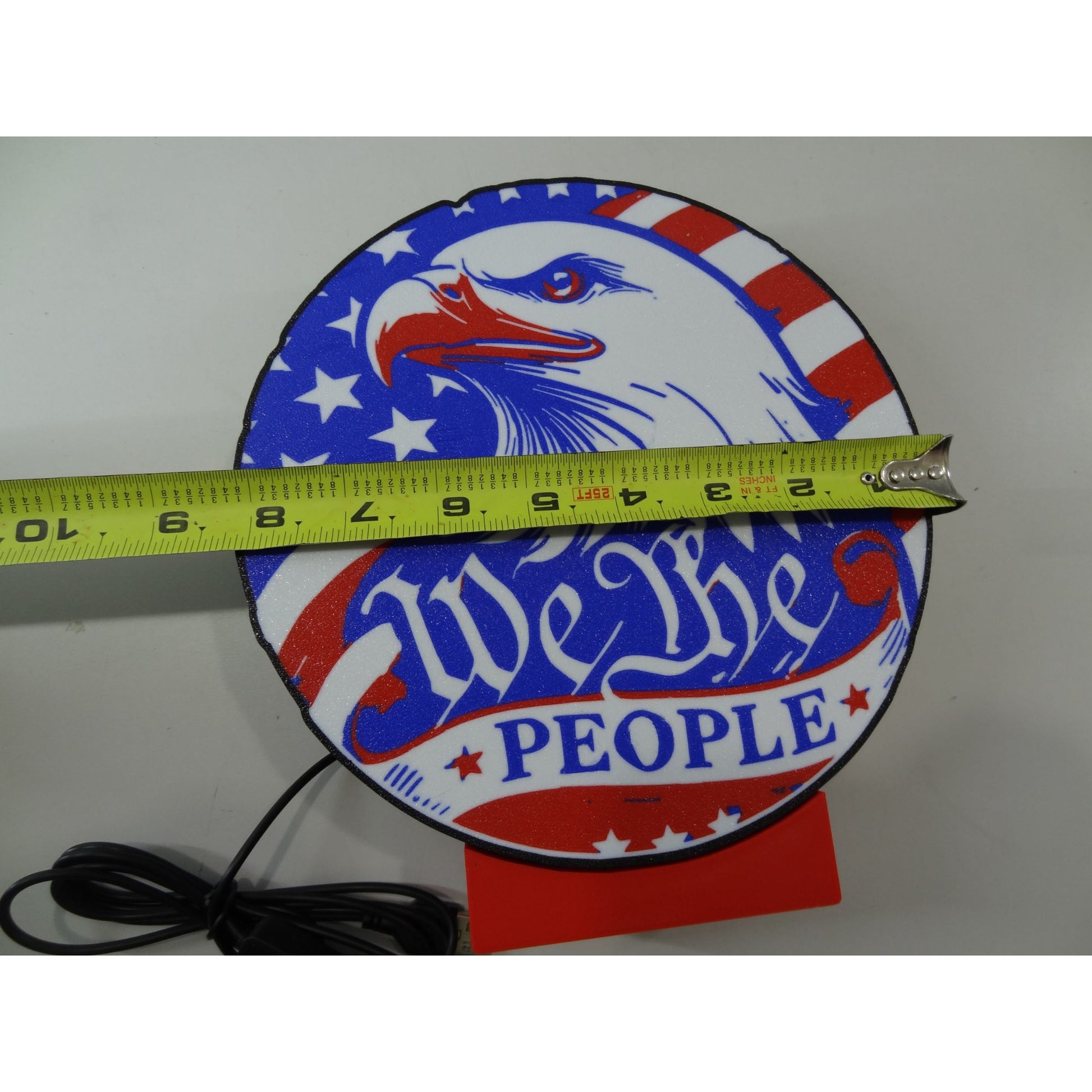 Patriotic LED Light-Up USB Sign With "We The People" Design American Flag & Bald Eagle Artwork 9" Diameter